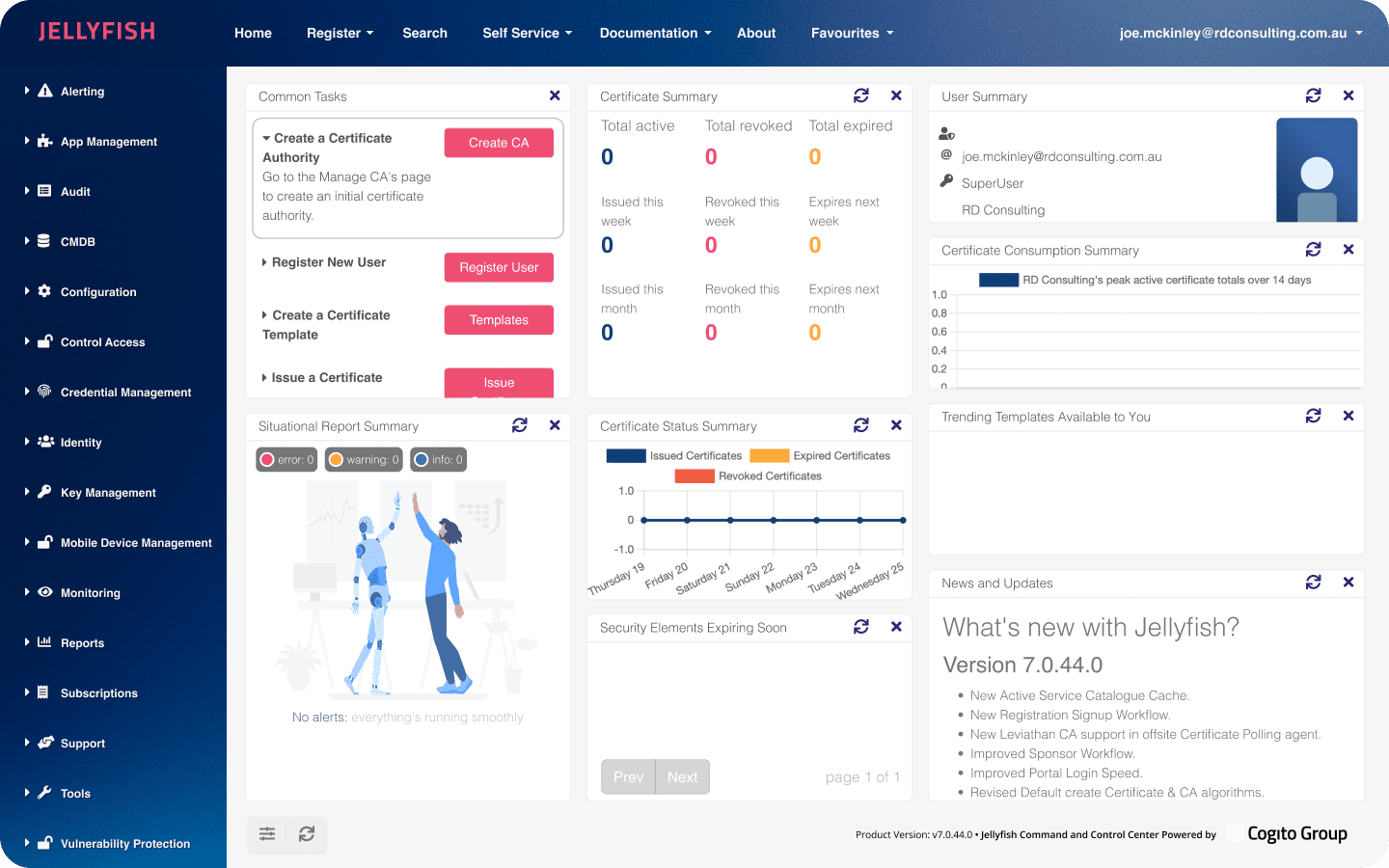 Jellyfish is a modular, scalable, and cost-effective cyber security platform by Cogito Group, enhancing security through visibility, control, and seamless authentication.